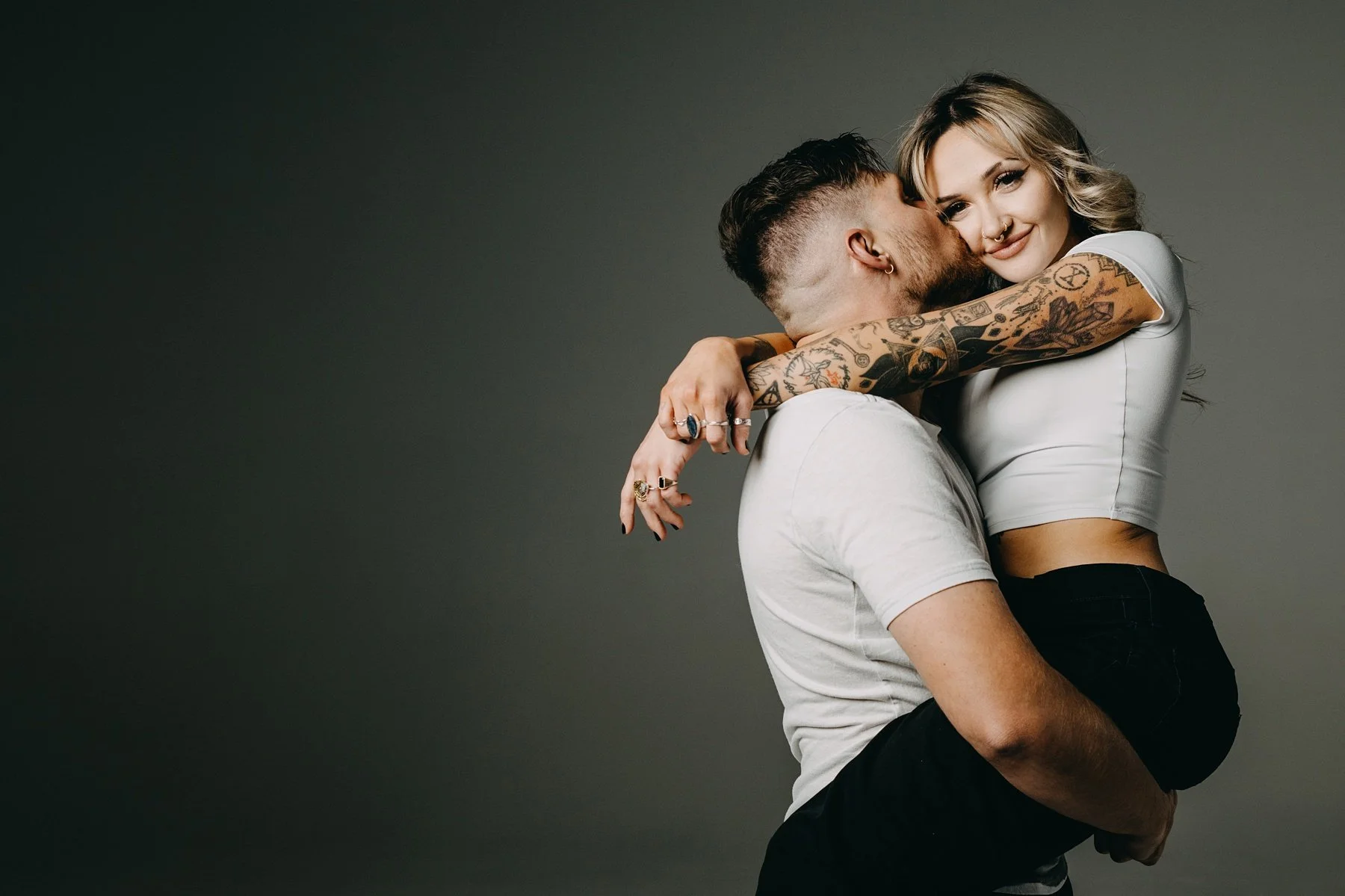 The final shoot we used the Nanlite FS-60b and projection mount to create a spotlight effect. Our models are musicians and I was inspired to create images that reflected their story as a couple.